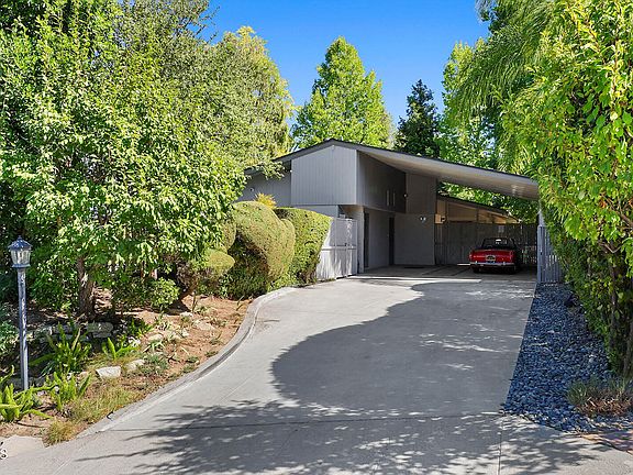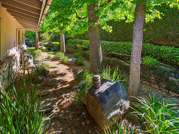 This Mid-Century style property is sited in the hills above the Rose Bowl on a private cul-de-sac. The home is surrounded by lovely gardens and has walls of glass that provide commanding views of the San Gabriel Mountains The open floor plan includes a classic stone fireplace with built-ins in the living/dining room and a generously sized kitchen with an abundance of cabinetry opening to the family room. The primary bedroom is ensuite with updated bath that features a separate shower and tub. The floor to ceiling windows allow for wonderful garden and mountain views. The secondary bedroom is located off the rear garden and has a French door access. It has a tandem bathroom with the study, which can be accessed off the entry and living room. The custom designed pool with spa, is nestled around the house creating a wonderful water feature off the family room. There is also a half bath and outdoor shower adjacent to the pool area. The mature landscaping and Zen-like gardens surround the home, creating a private sanctuary. The home is located near The Rose Bowl, JPL, The Art Center College of Design, Brookside Park and Golf Course, Pasadena Aquatics Center, Annandale Golf Club and Old Pasadena shopping and restaurants. With easy access to both the 134 and 210 Freeways, this property is only minutes away from Downtown L A and all the area has to offer.