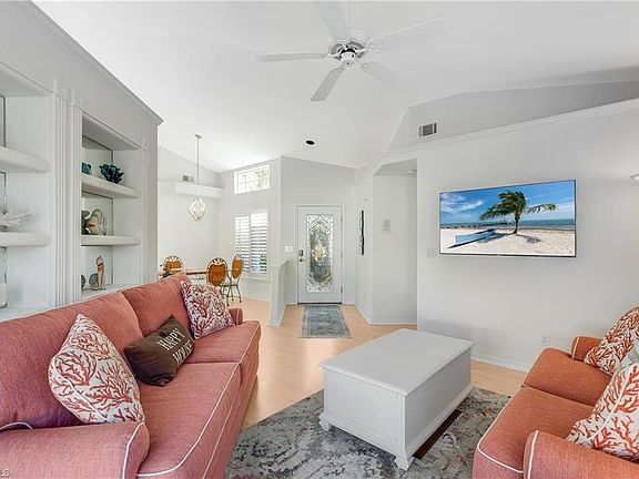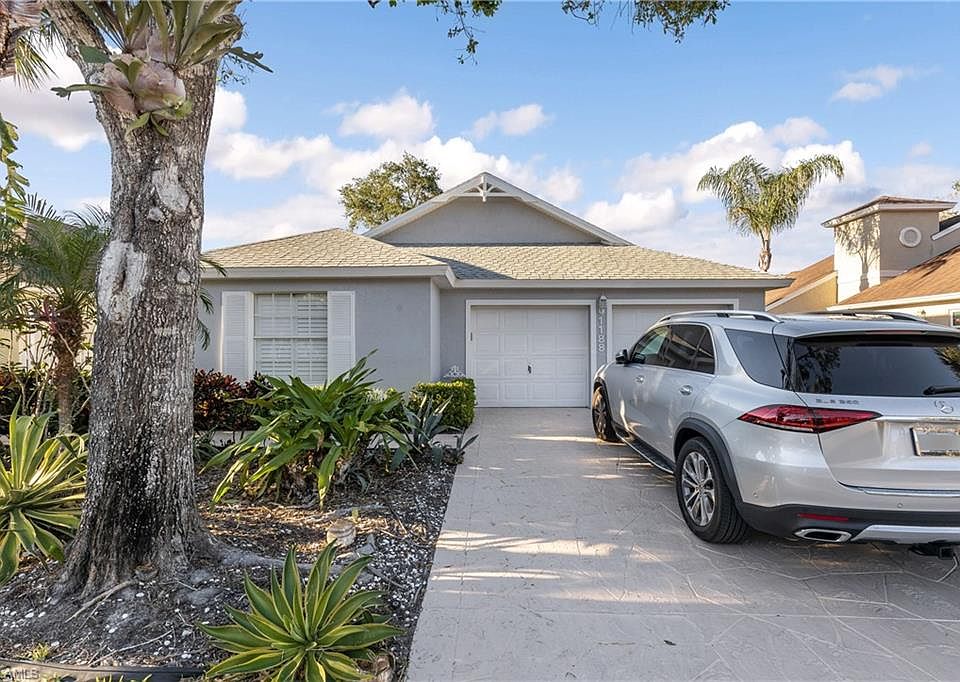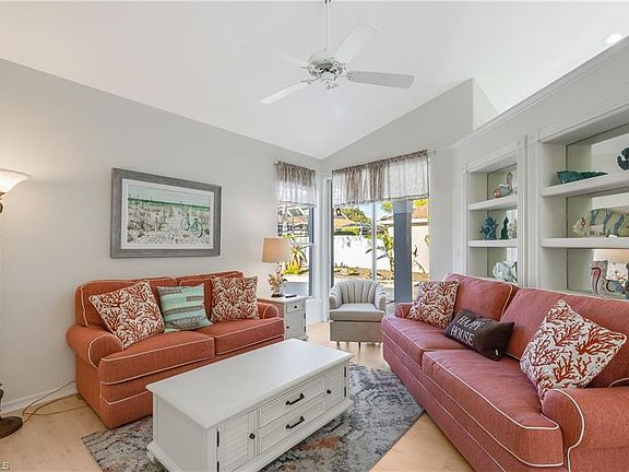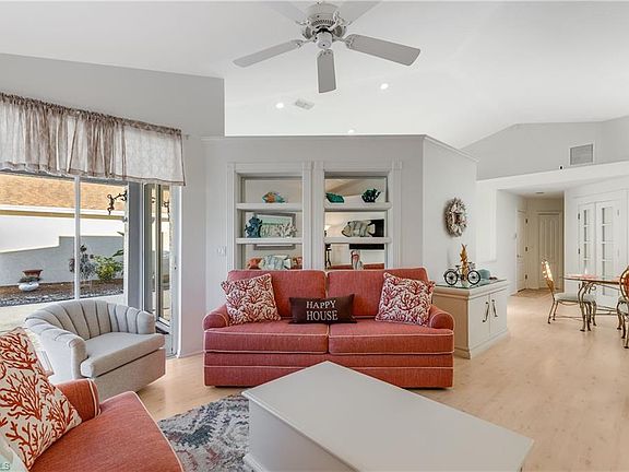 This two bedroom plus den two bath single family home is priced to sell! Enjoy plank flooring and tile flooring throughout living areas and bedrooms. Fresh new exterior and interior paint. Plantation shutters. New water heater, AC and dishwasher. Roof only 6 years old. Massive backyard open lanai area with endless possibility's. Enjoy the resort amenities included with your purchase. Easy 3 minute walk to the resort pool and spa, fitness room and lockers, sauna, restaurant and bar, a cabana bar by the pool for lunch and cold beverages, pickle ball and bocci, a kids play area and sidewalks with lighted streets. All the amenities are included with your purchase with the exception of the tennis courts which is a very affordable membership with 12 clay tennis courts and an on site USTA professional. This home is in a great location within 10 minutes to four beautiful award winning beaches, restaurants, shops, theater and the SW International airport which is only 20 minutes away. Fantastic Naples location!!