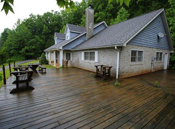 Enjoy the peace & tranquility from your private deck overlooking the mountains that change continuously like natures cinema.The spacious house has large rooms w/a fireplace in the living area for cool evenings & a kitchen & Dining area large enough for many.The den can be used as a 4th bedroom.Up stairs has a landing big enough for a large office,bedroom, bath & storage.The grounds provide space enough for garden,pool or riding four wheelers. Down below the house is a great swimming hole on the Cullasaja river.This private setting will be great for a large family or vacation spot.