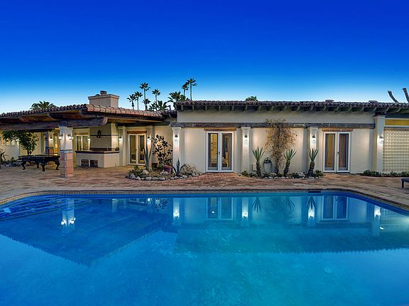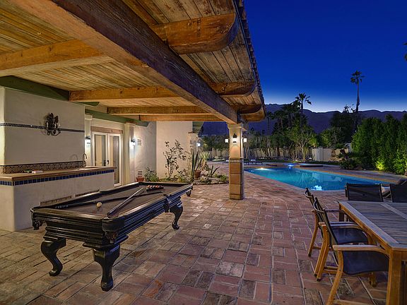 Location, location, location. This walled and gated Mediterranean estate is located in the famed Movie Colony east neighborhood which is blocks from downtown Palm Springs. This estate offers a formal entry, 4 bedrooms, 3.5 baths including an attached casita, large eat in kitchen, formal dining room, great/living room and pool and spa. The oversized master suite has a sitting room and a light and bright updated bathroom with a large walk in shower and separate claw foot soaking tub. The home has tongue and groove wood ceilings and French doors throughout. Outdoor living at it's finest with numerous private patios and garden paths that meander around the estate making it a secluded oasis. The grounds are spectacular and offer amazing San Jacinto Mountain views from all over the property which sits on .66 of an acre on a corner lot. Home is being sold turnkey furnished and has been a successful vacation rental. Owner has done several improvements to the property, truly a must see estate home.