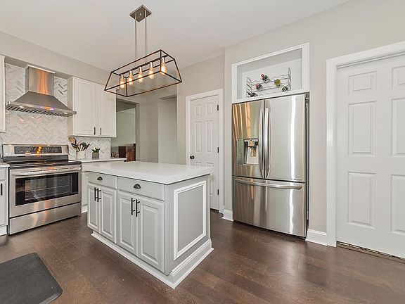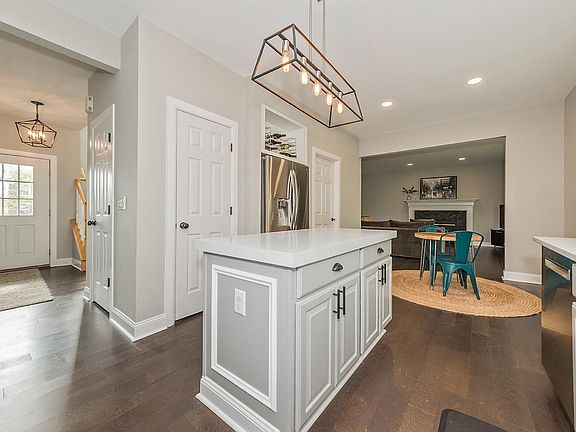 • RoomKitchenFeatures: Kitchen Island, Eat-in Kitchen, Wood Floor, Wood Cabinets, Quartz Counters