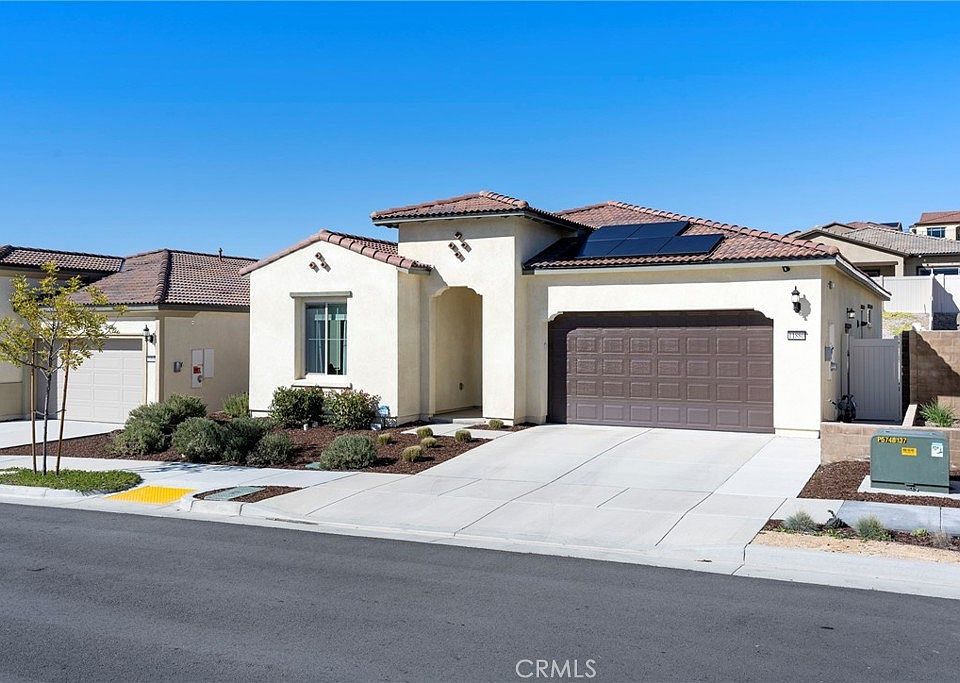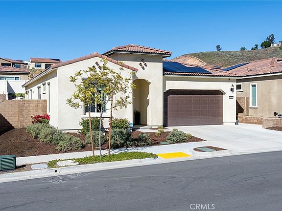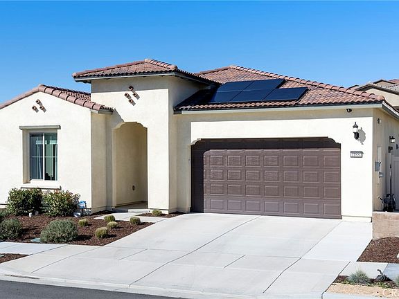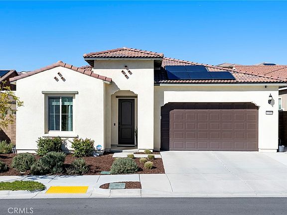RESORT-STYLE LIVING IN PRESTIGIOUS TERRAMOR 55+ COMMUNITY. ACCESS TO TWO LUXURY CLUBHOUSES AND ALL AMENITIES—INCLUDING INDOOR/OUTDOOR POOLS, FITNESS CENTER, FIVE MILES OF HIKING TRAILS. This THREE BEDROOM home, built by Del Webb, features OWNED SOLAR, ten-foot ceilings, fully-upgraded kitchen including appliances, countertops, and cabinetry. All flooring throughout the house has been upgraded to include luxury vinyl plank and ceramic tile. Large walk-in and linen closets in primary bedroom. Spacious laundry room with sink and storage cabinets. Backyard landscaping is fully customized with artificial turf, gravel, and retaining wall. The enhanced California room is perfect for indoor/outdoor living. Smart home features include WiFi-enabled thermostat, Ring Pro home monitoring system and doorbell, and keyless entry on front and side doors. No detail was missed in this home and it shows.