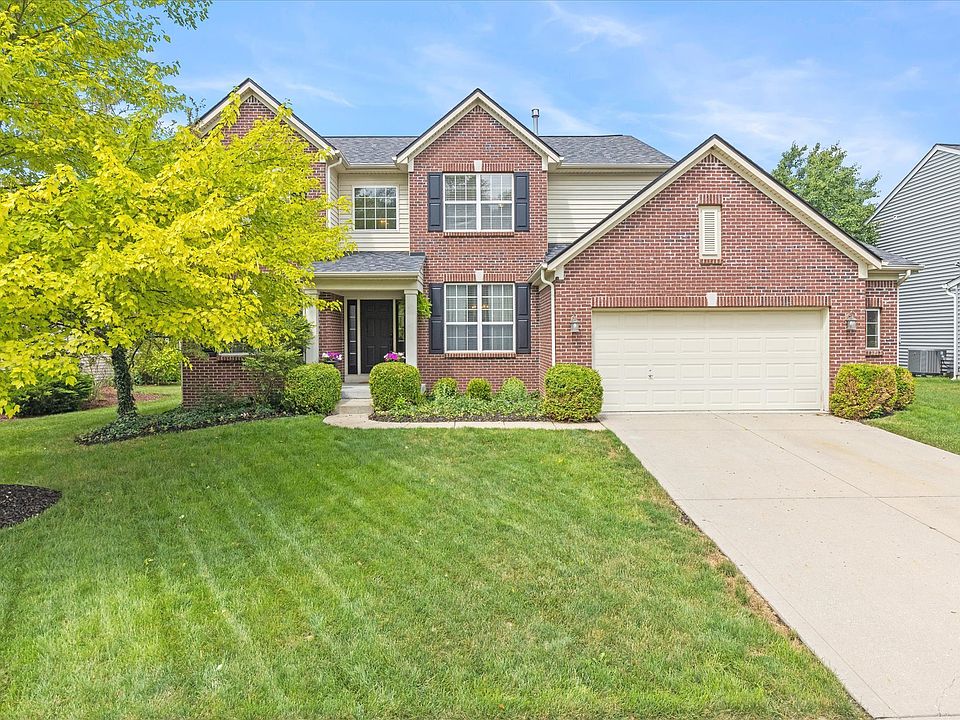Great Fishers location with so many wonderful features - 4 bedrooms, 2 1/2 baths, private office with French doors on main level, oversized Great Room open to the Kitchen with 42-inch cherry cabinets and center island, stainless steel appliances, open upstairs loft, finished basement, bump on garage for extra storage or workspace, wood deck overlooking backyard, private lot backs up to a wooded area owned by the HOA. Roof and carpeting throughout are brand new, and A/C was recently replaced. Close to restaurants, shopping, interstate access, hospitals, and the Geist Waterfront Park.