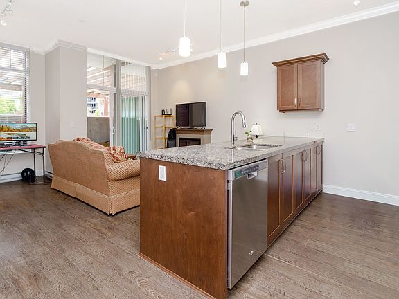 Bright and modern 1-bedroom condo in sought-after Brickwater Village! Nearly 600 sq ft of open-concept living with soaring 11-ft ceilings and large windows that fill the space with natural light. Overlooking the quiet courtyard, this home features quality laminate flooring, a spacious layout, and contemporary finishes. Located in the heart of town with restaurants, shopping, transit, and recreation just steps away. Ideal for first-time buyers or investors seeking style, comfort, and convenience.