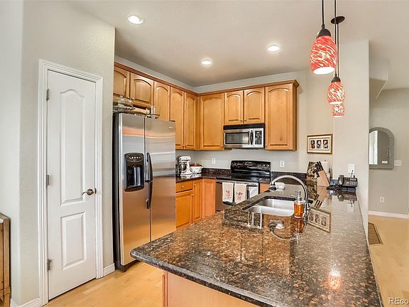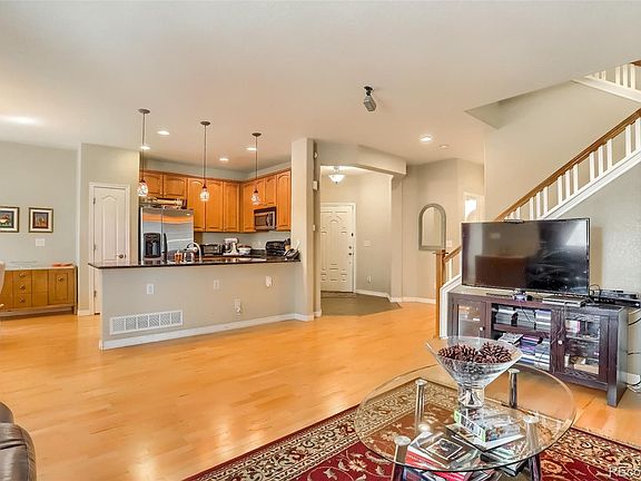 This beautiful Luxury end-unit townhome in highly desired Cherry Creek Vista gated community. You'll love the convenient layout, featuring beautiful hardwood floors. Perfect for hosting with an open layout, your kitchen boasts slab granite countertops, stainless steel appliances & a pantry with plenty of space. The master bedroom is your personal oasis with a lovely bay window turret area that can be set up for an in-home office or workout area, en suite 5-piece bathroom and walk-in closet. FULLY finished basement includes a full bathroom, large media area, & 4th bedroom. Plus an upstairs loft, fireplace, & an oversized 2 car garage & Enjoy the summertime in the swimming pool, tennis courts, volleyball, playground & clubhouse within the gated community. Fantastic location, this home is within walking distance & direct access to Cherry Creek State Park, preserved wetlands, trails, amenities, and restaurants! Cherry Creek Schools enhance the desirability of this wonderful community.