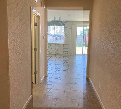This lovely single story home was built in 2015 and has approximately 1794 square feet. Tile flooring runs from the entry to the large open living room, kitchen and dining area. Kitchen is complete with microwave, 5 burner stove. dishwasher, disposal and abundant cabinets. All 4 bedrooms have carpeted floors and the master suite boasts a separate shower and tub, double sink vanity and walk-in closet. Central heat & air, 2-car garage with electric opener, front & backyard. Solar is hooked up to electrical panel. Close to school, park & shopping. No Pets. 6 or 12 month lease required