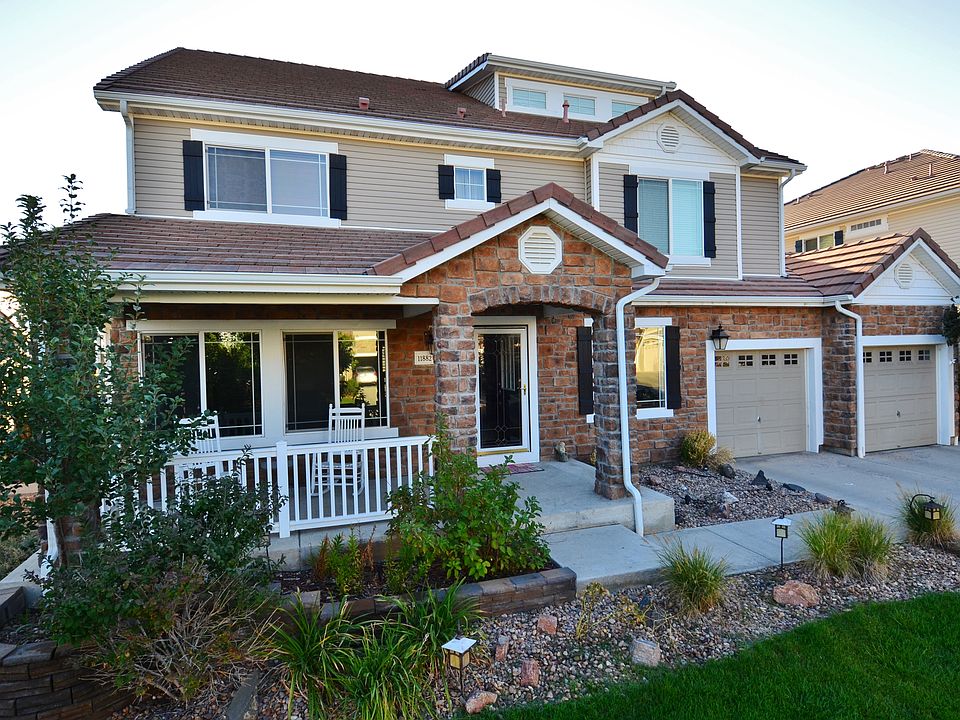 Have you been dreaming of more space? Nestled in on a quite cul-de-sac this home has everything you've been dreaming of. As you enter the home, notice the high ceilings, sitting room with gas fireplace, and formal dining area. Enter into the large kitchen featuring granite countertops, black SS appliances, dual ovens, gas range, cherry cabinets, and a butlers pantry. A second eating area, large family room, two bonus rooms, and a bathroom complete the main level. The 2nd level includes a large master suite complete with 5 pc bath including a large soaking tub, enclosed shower and his and hers large walk in closets. Two additional bedrooms, laundry room, full bathroom, and another bonus room finish off this level. The amazing loft area is an oversized space that could be used as an office, playroom, work room etc. The basement has been completed to add two more bedrooms, full bathroom, storage room, and extra space for games, workout equipment or T.V. room with wet bar hook up. A brand new 50 gal water heater, dishwasher, and smart fridge add even more efficiency to the house. The house is also equipped with dual furnaces, AC units, water softener, and a radon system. The 2 gas fireplaces on the main level, central vacuum system, home stereo system with speakers inside and out, and the smart garage door opener make this home one of a kind. Backing up to the 3rd hole of Buffalo run golf course, back yard is ready for entertaining with a large pergola and seating area. To top it off there is an attached 2-car garage with built cabinets to hold all of your tools or outdoor equipment. Dont miss the opportunity to own this beautiful home that is located just 10 minutes from Barr lake state park, new restaurants and shops at Prairie Center, and the new Bison Ridge recreation center right around the corner.