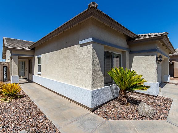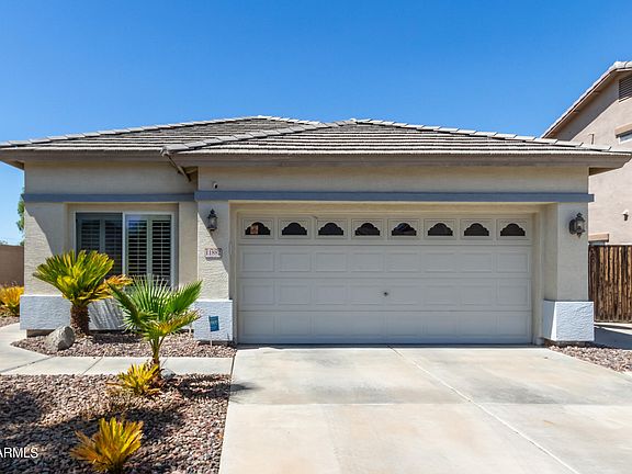 The search is finally over! Nestled on a peaceful cul-de-sac, this 3-bed, 2-bath home features a 2-car garage, an RV gate, and an extended driveway. High ceilings, timeless tile flooring, and sophisticated plantation shutters accentuate the sprawling open layout. The kitchen is a culinary enthusiast's dream, decked out with granite counters, SS appliances, pendant and recessed lighting, and a two-tier island with a breakfast bar. The den is ideal for an office. The main bedroom is graced with a sitting nook that welcomes abundant natural light, a walk-in closet, and an ensuite with dual sinks. The backyard showcases a covered patio, a built-in BBQ, a cozy firepit, a shimmering pool, and a pristine view of the golf course. Don't miss it!