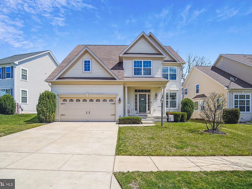 Welcome to this charming, 4br/2.5ba meticulously maintained Colonial home. A two-story foyer welcomes you as you step inside. You'll immediately notice the generous front living space that opens seamlessly to the dining room. The open concept continues with an updated kitchen boasting granite countertops and stainless steel appliances (gas stove!) that includes an informal dining space and opens up to the main living space with a gas fireplace. Oh, and did we mention the amazing wood flooring throughout the home? You will find the bedrooms and the laundry room upstairs. The primary suite offers vaulted ceilings, a large walk-in closet and an oversized bathroom with double-sinks, shower, and soaking tub. The upstairs bathroom also features double-sinks. You'll find nearly 1,100 sqft of finished entertaining space in the basement, as well as an additional unfinished space to hide utilities and your 'out-of-sight' storage needs. The home also has a generous two-car garage with a gleaming epoxy finished floors. Your lawn maintenance needs will be easier with the installed sprinkler system to help your grass look green all summer. This home is close to local shops, restaurants, and entertainment (including minor league baseball!) Commuters will love the easy access to Washington, DC, Joint Base Andrews, and Coast Guard Headquarters.