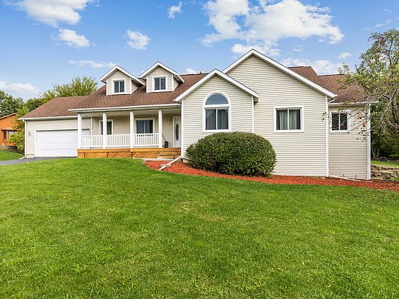 Beautiful custom built home in Belvidere on over half an acre! This home offers 4 bedrooms and 2 full baths with an open floor plan. Updated painted kitchen cabinets with new GE stainless steel refrigerator. New luxury plank vinyl flooring throughout the main living room area, kitchen and formal dining room. The main floor master includes it's own private full bathroom with whirlpool tub, separate shower and walk in closet! Vaulted ceiling with skylights in the kitchen and living room provides an open feel with ample natural lighting. Large deck for entertaining overlooking the spacious backyard, that backs up to farmer's land! Full unfinished walk out basement with rough in for 3rd bathroom. All windows replaced in 2018, radon mitigation system installed 2018, well tank 2012, hot water heater 2021, new GF refrigerator 2022. New well pressure pump 2023. Cinch Home Warranty. Being sold "as is".