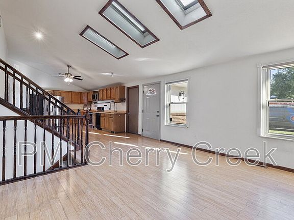 The welcoming front deck sets the stage for enjoying Colorado's seasons, while inside you'll find an open floor plan with bamboo flooring, skylights, and a cozy wood-burning fireplace. The open kitchen flows into the living and dining areas, offering an easy space for cooking and gathering.