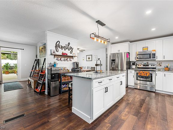Welcome home to this beautifully updated, open and bright 3 bed/2 bath ranch in Canal Fulton! The kitchen has white cabinets with black hardware, brand new stainless steel appliances (2021), large island with granite countertops and plenty of cabinet and counter space. The dining room has a beadboard accent wall, new ceiling fan and loads of natural lighting. The great room has plenty of space to relax and enjoy a cozy fire (new gas fireplace insert 2022) and white brick wall surround. There is an additional space (currently used as office) with built in desk and entire wall storage, white brick accent wall and additional closet. As you walk back towards the bedrooms, a closet on the left has washer/dryer capability for easy one floor living! Primary bedroom comes with an attached full bathroom with ceramic floor, oversized vanity, built-in linen closet, and tile surround shower with glass door. Two additional bedrooms and additional full bath with ceramic tile floor and deep tub/shower combo finish off the first floor. The basement has an 8x17 workshop and large 12x19 finished room with laminate flooring. Additional massive and open 24x41 rec room in basement ready for finishing touches! Outside the sliding glass patio door is a large 24x25 deck, 24ft above ground pool, oversized 10x20 shed, bonfire area all surrounded by vinyl picket and privacy fencing - a perfect oasis for entertaining!