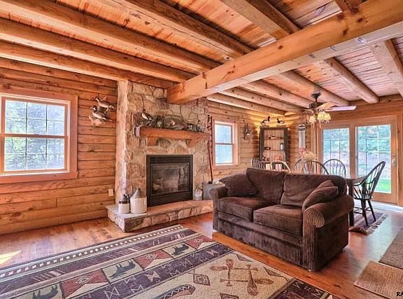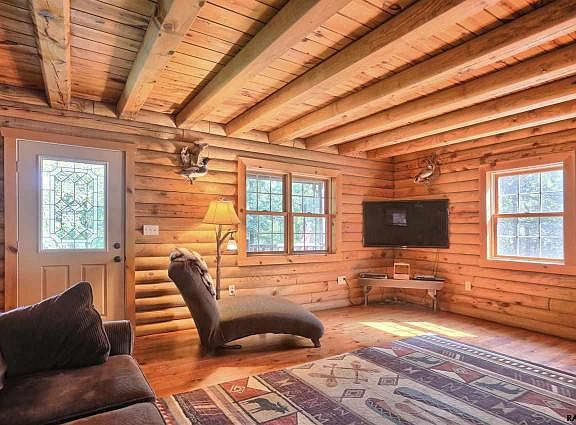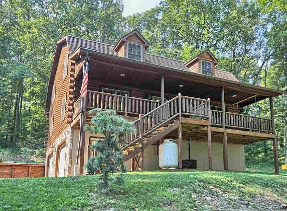 This log home oozes w/charm & character! Remodeled top to bottom & loaded w/great features: awesome kit w/granite counters, stone backsplash, stainless app, LR w/stone FP. 1st & 2nd flrs w/exposed beams, wood flrs. Mast suite w/cathedral ceiling. Covered porch, new Marvin windows, new driveway, finished basement w/pellet stove. A pleasure to show, amazing views!
