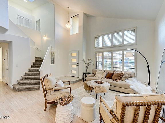 The Berryessa House. Experience luxury in this newly reimagined 2025 remodel. Situated on a premium lot that backs a lush greenbelt, with private gate access. Inside, soaring ceilings, skylights, wood shutters, and a cozy fireplace elevate the modern, light, bright, and open layout. This stunning property has a brand-new kitchen with thoughtfully chosen finishes, updated bathrooms with new cabinetry, which gives the home a fresh, refined feel. An elegant primary suite featuring stone counters, a large walk-in shower, and an oversized closet. Outside, enjoy a covered patio, large mature trees, and quick access to a heated community pool and spa. Conveniently located near the 101, dining, shopping, golf, top-rated schools, and Scottsdale's best amenities.