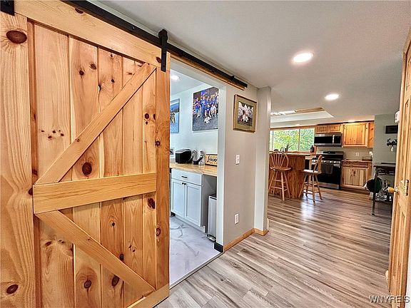 In the past 4 years, this home has been beautifully remodeled from top to bottom! This is where modern meets rustic in a property that features 4 bd+ 2 ba, A fully applianced kitchen with custom wood-burned artwork on countertops and fully applianced 1st floor laundry room with movable counters for convenience. Here, you can enjoy multiple outdoor spaces with two private bedroom balconies, a wrap-around porch with hot tub included, and a second-story balcony. Outside, you'll find a creek, pond with fountain, and a carport. The property also includes a spacious 3-story barn that has almost 3,000 sqft of interior storage, working lift, and two generous sized lean-tos. Property was previously zoned commercial and may be opportunity for next owner. Home to come furnished, excluding some personal items, unless negotiated otherwise. Purchaser to accept existing survey. Offers will be presented as they come in. Schedule your tour today! You won't want to miss this opportunity.