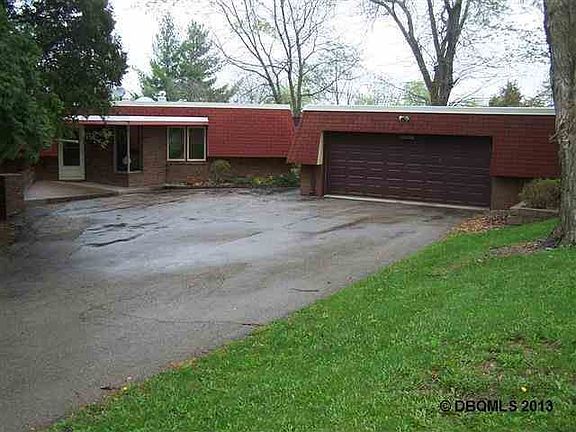Country peaceful setting on 1 acres next to a stream for this Frank Lloyd Wright uniquely designed home just on the West edge of Dub. Over 3000 sf, 4BR, 2BA, spiral stairs to walkout LL, plus 2 car garage & detached 20x24 outbuilding for all of the toys!