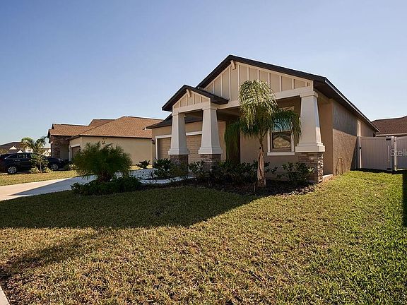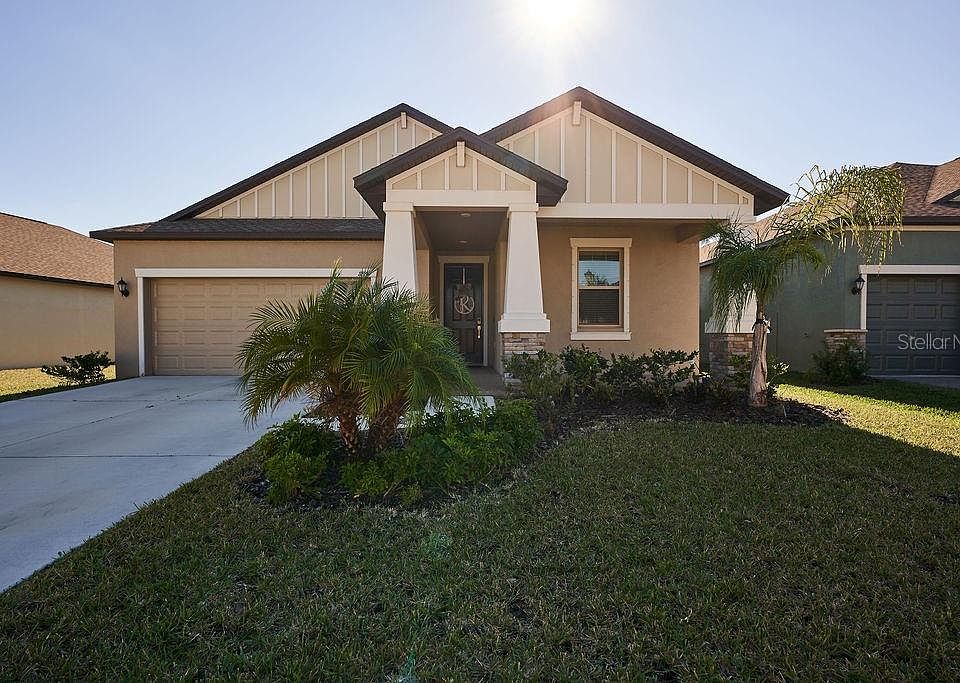Must see this beautiful home that was built in 2019. The New Jersey features a large family room for your family and your guests. The master suite is separated from the other bedrooms in a split plan layout for privacy. The master closet also opens to the laundry room for your convenience. Indulge in having a screened-in lanai and fenced yard where you can enjoy some peace and quiet. Take a walk through this Southshore community on the winding trail. Stay in shape by using the fitness center or challenge a neighbor to a game of hoops on the basketball courts. There is also a swimming pool, a clubhouse, and a tot lot available to all residents of South Fork.