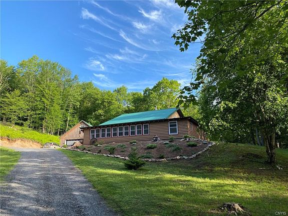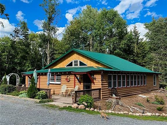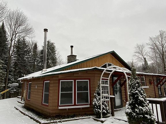 If there's ever a perfect year to declare you want to live off the grid, and in the easiest way possible, then allow me to make your dreams come true! This property has A LOT to offer. You will be impressed w/ the coziness & tasteful updates throughout the home. The large living room has grand, high ceilings w/ beautiful log beam detail. Hardwood floors. High windows that capture sunsets and night skis. Tall stone fireplace as the centerpiece. Ample size bedrooms. Two soapstone woodstoves. Large bathroom. Soak in the tub while gazing out toward the pond & wooded paradise that this 10 acres provides. Kitchen & large dining room are spacious & nicely updated. Just a quick walk down the road brings you to your 41 ft on the Oswegatchie River! (And just on the other side starts the Adirondack Park). There is a 2 car garage has finished heated workshop space, full bathroom, and the 'battery room' for the solar panel system. Upstairs is PERFECT to set up as (2) bedrooms for visitors/hunters/teen suite/lots of flexibility. A huge highlight of this home are the new Solar Panels & new 15kV generator. Running 1 appliance at a time is A THING OF THE PAST! See update for more info.