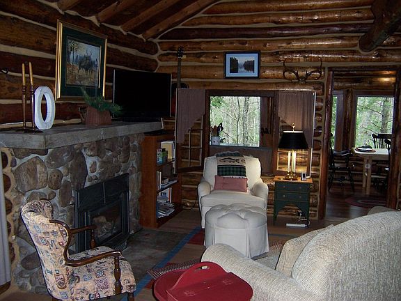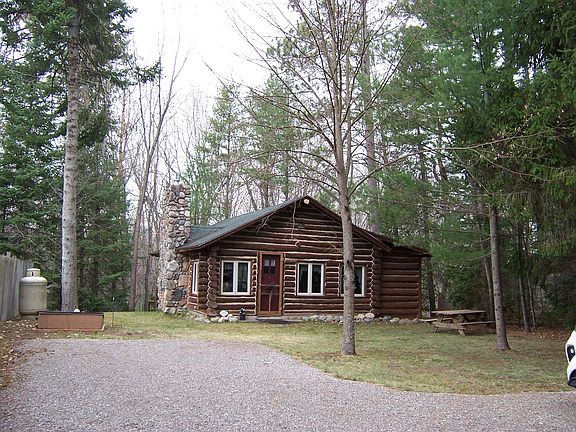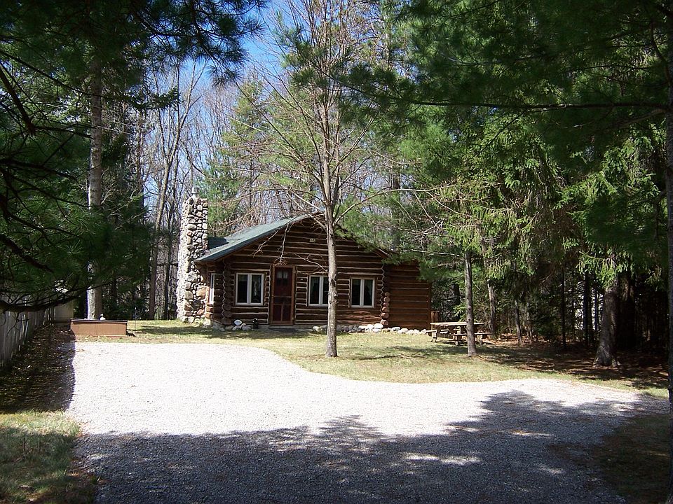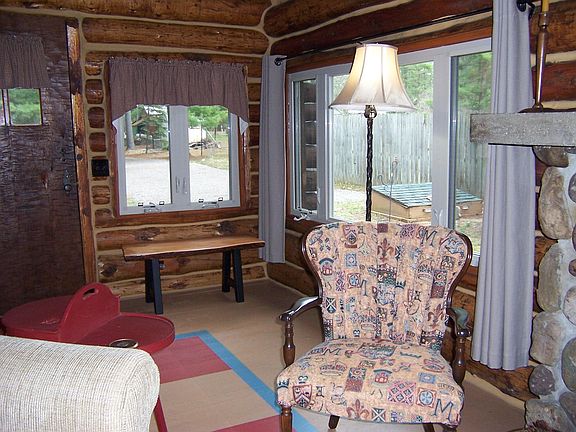 Classic cedar full-log cabin overlooking the South Branch of AuSable River within a mile of the village. Built on a bluff close to the water providing fantastic 180 degree views of the flowing river below. Constructed in 1935 and meticulously maintained since. Fish, kayak and canoe from your own 65 ft. of waterfront. Major updates in 2009 included electrical, plumbing, Jotul log insert in fireplace, Jeld-Wen windows, new chinking, roof shingles and rip-rap rock for shoreline protection. This storybook cabin features a great room design with cathedral ceiling, custom Murphy bed, beautiful natural stone fireplace, with separate bath and kitchen/dining rooms. Kitchen features a wall of windows, patio door, solid surface counters, with appliances included. A 12' X 16' bunkhouse/shed is included on the deep wooded lot. The work is completed and is ready for new owners to love and enjoy.
