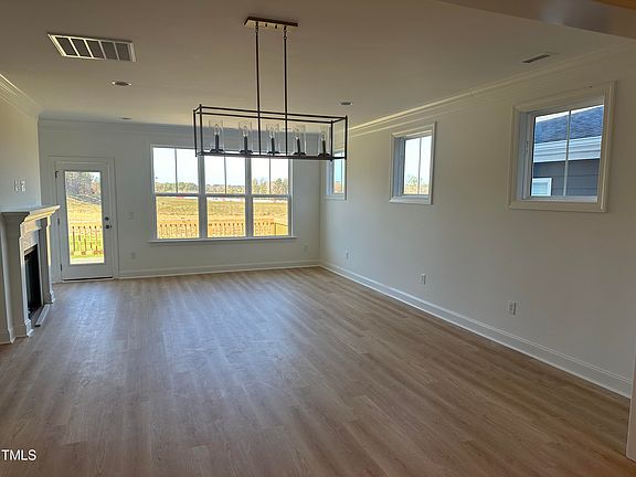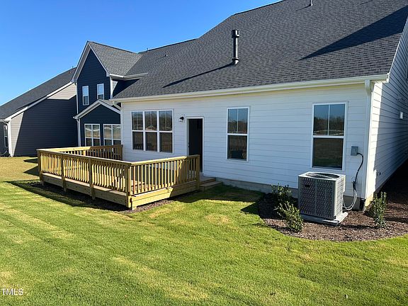 New Home Ready for Move In! This Brand New Declan will be the perfect home with the Primary bedroom on the Main Level! Luxury vinyl plank flooring spans the main level as you enter through the foyer and the home opens to the expansive great room and dining room. The heart of the home: the kitchen, features a large eating bar island, is equipped with a gourmet stainless steel appliance package, including a hood vent, upgraded Carrara Marmi quartz countertops, chic white cabinetry, and a modern chrome pull-down faucet. The kitchen opens up to the dining room and a bright great room, which is adorned with additional windows and a beautiful fireplace with a mantle and Artic Grey surround. Just off the great room, you'll find a wooden deck, ideal for extending your outdoor living space. The main level also includes the primary bedroom, situated at the back of the home. This spacious retreat comes with a large walk-in closet and an en suite bathroom featuring Grey Expo quartz countertops, and upgraded fixtures. Upstairs, the oak stairs lead you to a generous loft, two secondary bedrooms with large walk-in closets, a dedicated office space, and a finished storage area. This thoughtfully designed upper level ensures you have all the space you need in this beautiful community. Located in Wendell Falls, an amenities filled community with pools, trails and so much more!