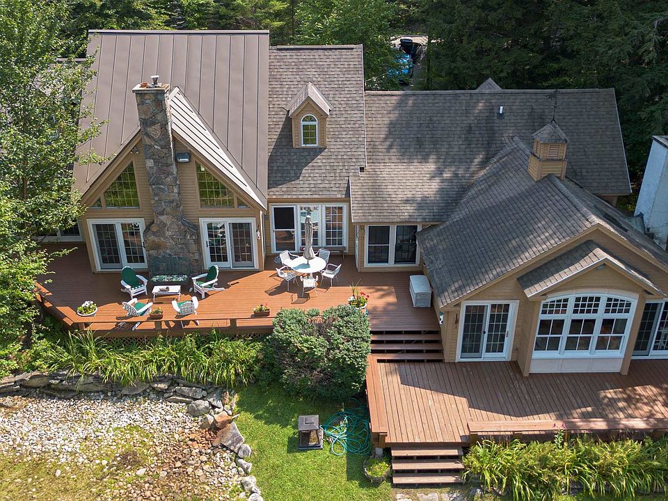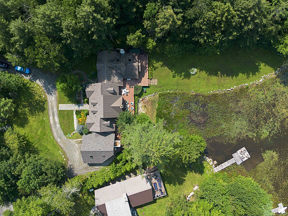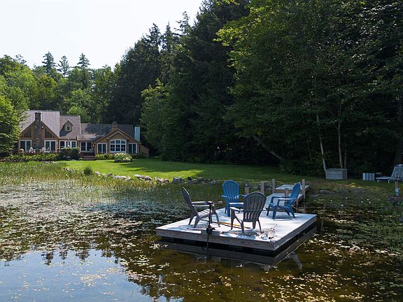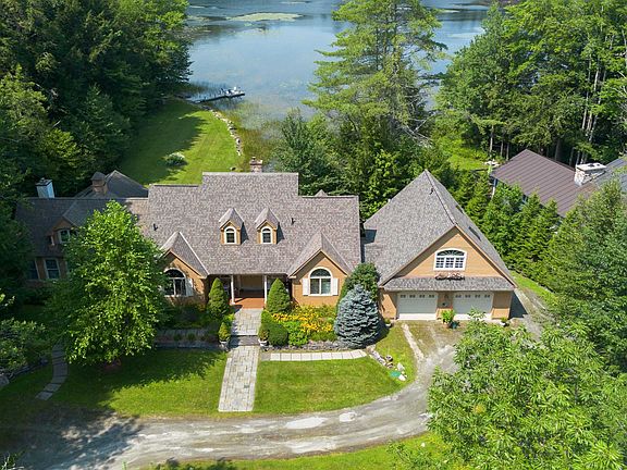 Discover a rare opportunity at this five-bedroom, 5-bath waterfront home in the Cole Pond community. Situated just minutes from skiing and steps from the water, this property is a year-round paradise for outdoor enthusiasts. The main home features a spacious four-bedroom, 3.5-bath layout. Its open-concept living and dining area is bathed in natural light from large windows, creating a seamless connection with the outdoors. A Pellet stove with the fieldstone fireplace adds warmth and character to the main living space. Just off the living area, a second living room with a sleeping area offers a perfect spot for a home office or guest wing while enjoying lake views. Upstairs, you'll find two bedrooms and a separate office, sharing a full bath. The property also includes a two-car garage with a convenient studio apartment and private bath, ideal for guests. Enjoy direct access to the water with a unique floating dock, perfect for kayaks, paddle-boards, and simply taking in the magnificent scenery. This home is designed to accommodate a life of both leisure and adventure.