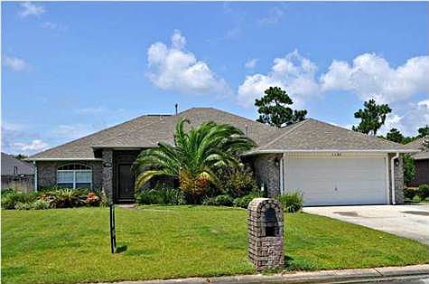 Beautiful home located on a large lot in the highly desirable Estates at Emerald Shores. In an excellent school district, near beaches and NAS Pensacola where you can watch the Blue Angels practice overhead from the privacy of your pergola covered patio in the large fenced backyard (play set conveys). Enjoy an open floorplan with high ceilings, tile and wood laminate throughout the home. The spacious kitchen has ample cabinet and counter space with stainless appliances and a breakfast bar overlooking the dining area and living room. The living room has a cozy fireplace and french doors leading out to the patio. Bonus area for formal dining, office, or play area. The large master bedroom can accommodate an oversized bedroom set and has a raised ceiling. Master bath has a garden tub, separate standing shower and walk in closet. Don't miss all this home has to offer.