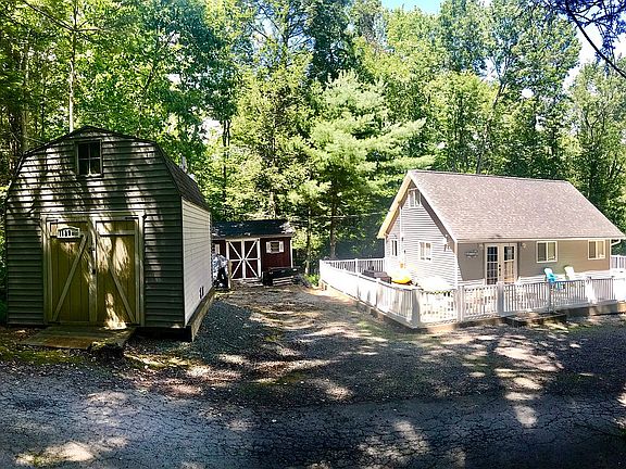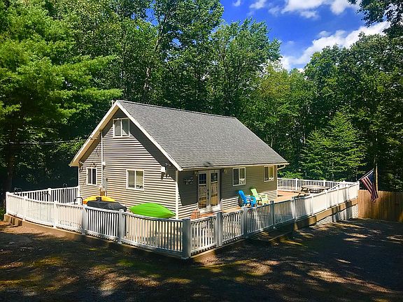 Private beautifully renovated home with no HOA fees and no community. A great lake home or starter home as it is newly renovated with Lake Rights to Lake Wallenpaupack where you can kayak, swim, fish or sit at the shore and enjoy the lake on a private no public access beach. The home sits in a quiet peaceful neighborhood situated behind an area of 300 acres of private land with seasonal lake views, a large wrap around deck for you to sit out and enjoy coffee, s’mores and the peaceful surroundings. The large deck wraps around three sides of this beautiful home with access to a private spacious yard with privacy fence and room to double the yard space. The home is complete with new stainless appliances, 1 and 1/4 inch granite countertop in the kitchen, a large island, and in the bathroom as well. Warm up by the wood burning stove with floor to ceiling stone work large enough to heat the whole house, or turn on the brand new furnace large enough to heat a much larger home(if expanding). New roof, new siding, new fence, new decking. Outside enjoy 2 sheds with room to store all your lake toys and more that also have full power. The potential exists for a rental home for income opportunities now or in the future if you wish to keep it as an investment. Architect plans for expansion are also available. Don’t hesitate to make this perfect lake house your own, as you wont find much NEWLY RENOVATED like this and all on the most desired private cove on Lake Wallenpaupack. FOR SALE BY OWNER $329,000! Flexible, open to all reasonable offers.