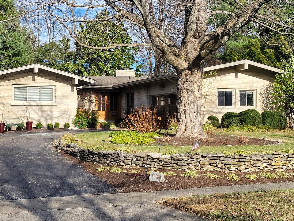 Showings to begin Friday, Dec. 9. Absolutely charming Ranch style home with a unique Mid-Century Modern architectural feel; almost every room is vaulted! Updated and in move in condition, this Open, one level floorplan offers, hardwood floors throughout, stone fireplace with gas logs, newer windows (many sliders), main level laundry, delightful sunroom, professionally landscaped fenced yard! Lovely Foyer has double wood doors with glass insets, opening off a welcoming, courtyard! Great Kitchen with Jenn Aire gas range & Fridge, Bosch Dishwasher, vented Range hood, granite counters, soft close drawers and is open to the vaulted Family Room with built in cabinetry & shelving. Spacious Primary Bedroom Suite is secluded with hardwood floors, vaulted ceiling, two roomy closets, attached Spa Bath; multi head shower, double sink vanity! All Bedrooms are nice sized with big closets and hardwood floors, two inch blinds as well. ATTACHED roomy two car garage! Nice sized backyard! Walk to Chevy Chase, Ecton Park, very convenient to Downtown, UK, Baptist Health and St. Joseph Hospitals.