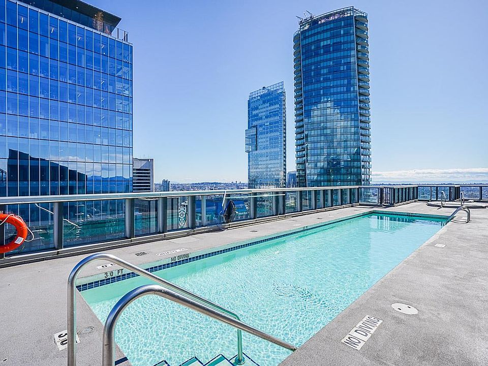 Welcome to The Melville, Luxurious Award Winning Architectural Icon in Coal Harbour. Investment Opportunity or to live in. Uniquely Spacious 718sqft 1 Bdr+Den apartment with a very functional open concept floor plan. Floor to ceiling windows bringing in tons of natural light. Beautiful kitchen with granite counter tops, gas range, lots of cabinet/counter space. Formal dining area with an opening into the balcony ideal for summer entertaining. Good size den, perfect space for a home office or extra storage. Spectacular rooftop amenities including a gym, sauna, BBQ/picnic area, outdoor pool & hot tub with Stunning Panoramic Views. Amazing location, walking distance to waterfront, Stanley Park, Transit & Robson Street. Close to the Best Restaurants & Coffee shops in Vancouver.