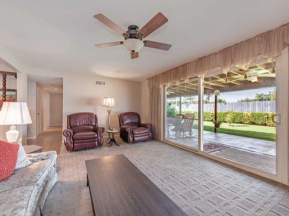 Adorable, pristine home located in a great neighborhood with lots of amenities you'll love. Remodeled kitchen with granite, including a very large island, dining area, like a Great Room concept, with the area next to the kitchen usable as an office, formal dining, family room or you choose!Tile flooring in entry, kitchen looks like hardwood flooring, but prettier.Major upgrades include whole-house interior painting, dual pane windows, newer roof, newer water heater. Baths have been upgraded and immaculate.Ceiling fans in all bedrooms and living room too.Living room has a wood-burning fireplace where you can sit and enjoy the yard through the large slider.The rear yard has a beautiful patio the length of the entire house and covered, ceiling fans to keep cool and relaxing to sit and enjoy coffee in the morning and wine in the evening!Indoor laundry with lots of cabinets!Whoever likes to make jam, fruit trees in the rear include peach, navel orange, mandarin, tangerine, lemon, & avocados.The garage is situated so there's a possibility of parking a small RV or other toy on the driveway. Hurry to this one!