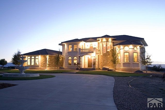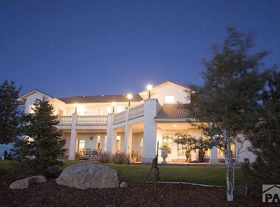 Custom built Liberty Point home, Italianate architecture on 1.45 acres, with mountain and Lake Pueblo views. This home welcomes you the moment you enter. Elegantly styled gourmet kitchen with 42 custom cabinets, granite counters, stainless steel appliances. Home features 3 master suites, all with incredible Lake views. Enjoy the comforts of your Main Level Master Suite with gas fireplace in sitting area. Spa bathroom With jetted tub & expansive shower, double sinks with 12 foot ceilings. Inviting large entertainment level with Theatre Room includes wet bar, pool table area - prewired for numerous televisions, Home Audio System, 3 Upper Level Bedrooms with a Loft, all having access to balconies with either views of Lake Pueblo or a beautiful city view. The covered Patio is perfect for entertaining. Each level has own A/C and furnace.