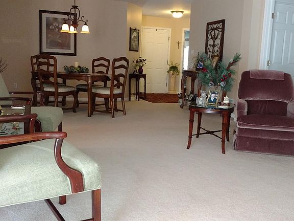 Lovely 1st floor, 2 bedroom, 2 bath condo in Lakewood Estates. Enter to a tiled foyer that leads into your living room and formal dining room combination. Living room opens to the eat-in area of the kitchen which features crowned oak cabinets, pantry closet and breakfast bar. Lots of nice natural light streaming in from windows and slider. Large Master Bedroom includes walk-in closet and ensuite bath with dual sinks and linen cabinet. Second Bedroom was being used as a den. All appliances are included. Enjoy the extended back patio area during nice weather - no backyard neighbors! New hot water heater in 2015. One car attached garage has added lights, extra outlets and storage niche. Pond is located in the community which has low HOA fees - no more mowing or shoveling!