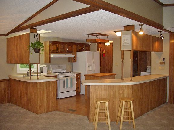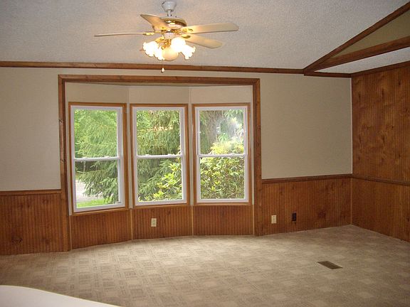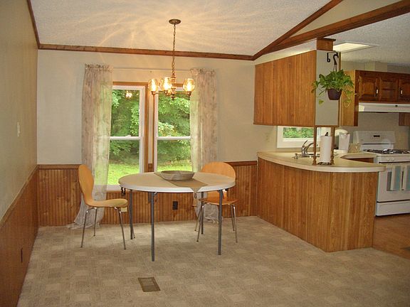 This nice manufactured home is set atop a hillside setting with a private yard on over 2 and half acres of land. Open concept living with large living room, dining area and kitchen with ample counter space. Pretty details with cathedral ceiling, bead board walls and nice paint colors. Master bedroom with BRAND NEW completely remodeled bathroom. Improvements include; vinyl replacement windows, BRAND NEW crushed asphalt driveway, newer roof, BRAND NEW heating duct work, freshly painted interior, carpeting, deck and shed. Convenient location