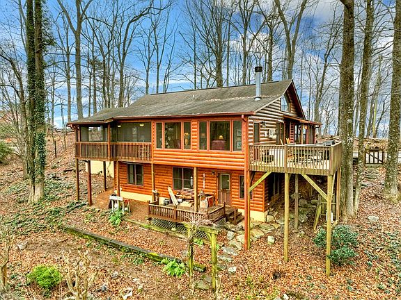 Some of the best mountain views you will find in the area! Located in popular Walnut Mountain, this home features easy access on all paved roads and open floor plan focused on the spectacular views! Lots of outdoor living options including decks, covered porch, fenced yard for your furry friends and lovely sunroom for year round enjoyment of nature. Main level with large, open greatroom, cozy fireplace, dining area and updated kitchen with granite counters, large island and stainless steel appliances. Main level primary bedroom with ensuite full bath and guest room with access to additional full bath. Finished, daylight lower level with large recreation room, two additional bedrooms, full bath and workshop area with laundry. Walnut Mountain is a friendly mountain community with loads of amenities including access to lovely Turniptown Creek with picnic areas, access to four community lakes, a large clubhouse with fitness center, pool, tennis courts, hiking trails and dog park. Some furnishings negotiable.
