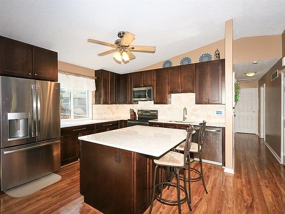 Open concept w/vaulted ceilings and stunning kitchen remodel perfect for entertaining! Featuring quartz counter tops, gorgeous stone back splash, 42inch cabinets, upgraded appliance package, new AC unit/heat, finished LL w/new epoxy floors, wb fireplace, Ikea storage unit, large deck, oversized 2car garage, and flat fenced backyard.