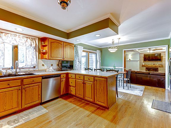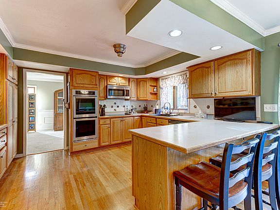 Come and enjoy! You'll love living here in your private oasis! This great home has large rooms everywhere! The first floor has a spacious kitchen with stainless appliances and lots of cabinets and counter space! This steps down to a beautiful family room with coffered ceilings and a pretty stone woodburning fireplace. Step out the door to the awesome Florida room with its huge hot tub for relaxing! There's also a big bedroom/office and full bath on the first floor! Living and dining rooms are great for even more living space or your larger events. There's a first floor laundry, too. Upstairs are huge bedrooms. The primary bedroom has a it's own fireplace, vaulted ceiling, big closet and great bath with 2 sinks, tub and brand new shower! Three more bedrooms are upstairs, one with a private bath and 2 share their bath. Perfect for all! Wander to your new walk out basement and find a big rec room with great windows and a wet bar. There's also an office or bedroom and lots of storage. Outside you will find a pretty pool with slide for your summer fun, winter and summer covers included! There's a big Trex deck and plenty of patio space. Big 3+ car garage! The shed is great for storage. There's a firepit and lots of exploring you can do in the yard! 2 HVAC systems for efficiency. Siding was painted within the last few years. Pool equipment, pool table and hot tub stay. Come and get this joyful home before it's gone!