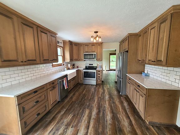 CHARMING HOME ON 5 ACRES! Situated on a corner lot, with plenty of room for guests, hobbies, and outdoor activities. Beautifully remodeled kitchen includes Custom KraftMaid cabinetry with soft close drawers, and new appliances. Flooring has been replaced throughout, including brand new carpet upstairs, and bathrooms tastefully updated. A nice roomy garage is the icing on the cake! Make this your forever home today!