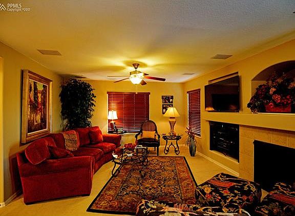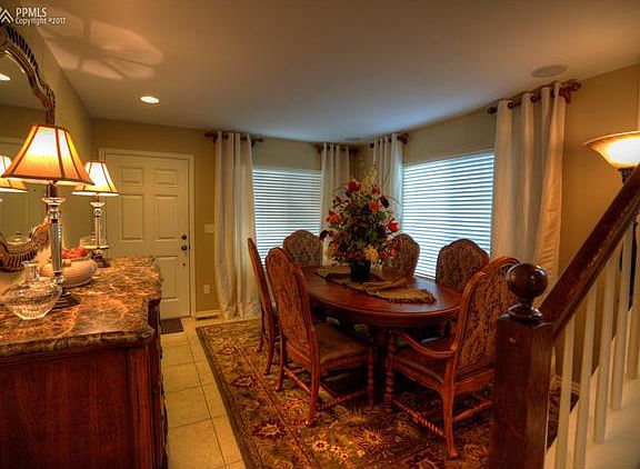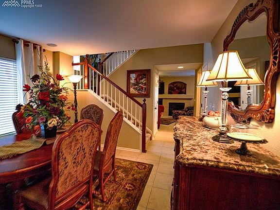 This IMPECABLE 2 story home was a Builder's MODEL and is an absolute MUST SEE. It is LOADED WITH UPGRADES. It features a LOFT area w/BUILT-IN BOOKSHELVES, SURROUND SOUND, a LG MASTER SUITE w/LG 5PC BTH and WALK-IN Closet. Other UPGRADES include: CARPETING, TILE, HARDWARE, CHERRY CABINETS, GRANITE COUNTERS, CLOSET UPGRADES, HUNTER DOUGLAS Blinds, FIXTURES and LIGHTING. It has AC and a HUMIDIFIER, MOUNTAIN and PIKES PEAK VIEWS. It is FULLY LANDSCAPED w/AUTOMATIC SPRINKLER SYSTEM and backs to a beautiful PLAYGROUND.