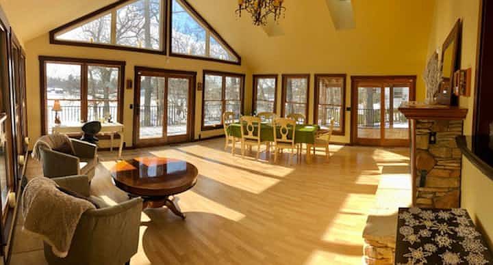 Enjoy a 5 Star Luxury Lodge w/River View. Offering Month to Month Rentals. Rental price includes utilities, outside maintenance/yard care, and monthly housekeeping. Stay in High-End, Pristine & Safe Off Notre Dame Campus area. Beautiful views of St. Joseph River from expansive decks & southern facing windows. 2 Huge Gas Fireplaces, Lush accommodations, Chef's Kitchen, & Private Parking. Offering Month to Month Rentals. On a bluff w/woods & pathway to river front access. Serene space provides 2 luxurious bedroom en-suites w/private baths. House is available for Temporary Housing Needs with Short or Mid-Term Stays for Traveling Nurses, Doctors, and Professionals. Great for a Home Away from Home Location for a Longer Term stay! Offering Month to Month rentals , Fully Furnished, Short term or Mid Term Available. Rent includes all amenities, utilities, yard and outdoor maintenance, monthly housekeeping. No smoking on Property.