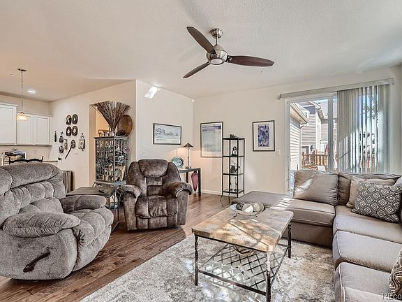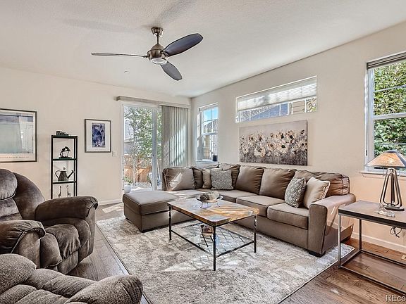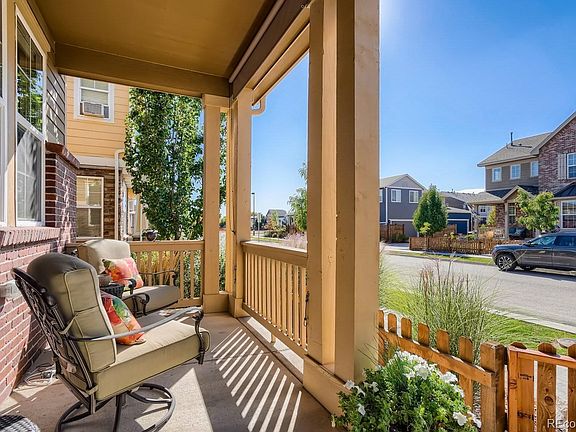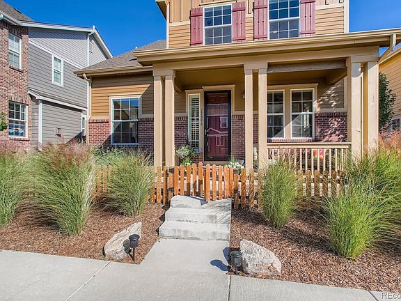 Welcome to this immaculate 2-story home in the highly sought-after Bradburn East neighborhood! Enjoy a morning coffee with your pup by your side on the fully fenced front porch and watch the sunset with a warm adult beverage in hand with the custom front shade extended for privacy and sun protection. Built in 2016, this home has custom and thoughtful additions throughout including an upgraded stone patio and nearly zero-maintenance landscaping, sliding wood barn door into master bathroom, brand new fully-owned solar (roof), (lockable) wine fridge, custom blinds throughout, ceiling fans including in vaulted entry foyer a whole house humidifier and radon mitigation. The main level open living/great room and kitchen has beautiful natural light, large windows, recessed lighting, gas fireplace (with blower) and access to the back patio. High-end finishes including granite counters, stainless steel appliances and a walk-in pantry rounds out the kitchen. The main level also features a dedicated office / flex space with french doors, mudroom with built-in cubby storage for bags, boots and leashes, dedicated dining room, laundry and a half bath. Upstairs, you'll find a spacious master suite with ensuite 5-piece bathroom including a deep soaking tub, oversized shower, private water closet and dual sink vanity. Open the south facing window in the bedroom for a beautiful breeze in the afternoons. Two additional large bedrooms and a full bath with dual sink vanity and granite counters completes the upstairs. The nearly 600 sf unfinished basement is stubbed; build a home gym, game room or lounge area and an extra bath -- easily! Bradburn is surrounded by countless amenities including trails, parklets and shopping (Whole Foods, Sprouts, 5280 Burger Bar, Cava and other dining options) all within walking distance. Easy access to Big Dry Creek path for biking and half marathon training, open space and parks. Bradburn is a tight-knit community; you do not want to miss out!