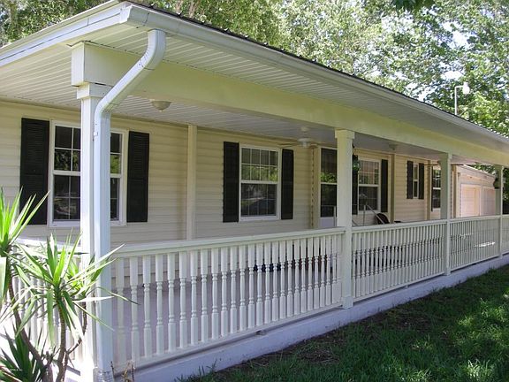 From the street you'd think this was a House on 1.57 Acres with a New 50 Year Roof, Huge Front Porch and 2car Garage. But it's a 3/2 Mobile with even more Good Stuff out back. Another Large Covered Porch, Storage Shed & a 24x30 Detached Garage. Inside the Updated Kitchen has $12k in Cherry Wood Cabinets, Eating Area, Breakfast Bar n Stools and New Appliances. Features also include Ceiling Fans, Inside Laundry, Master Walk-in Closet and a FP for Show only. Your Buyer won't be disappointed