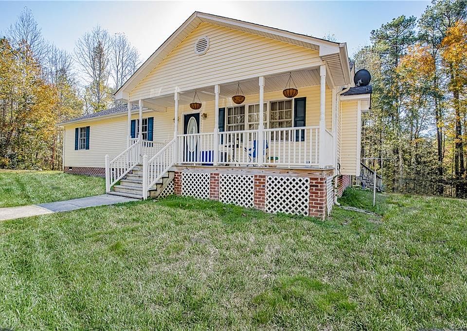 Beautiful rancher on over 7 acres in Dinwiddie County. This opportunity for one-story living is a must see! Welcoming you into the home is the family room with vaulted ceilings and hardwood floors. This leads into the kitchen, open concept dining area, and laundry room. Down the hall, the primary bedroom offers an ensuite bath with a double vanity. There are also two remaining spacious bedrooms and another full bathroom. In the back of the home you will find a screened in porch with lots of potential! There is also an uncovered deck that overlooks the large backyard. Detached shed, and plenty of land to explore with this property!