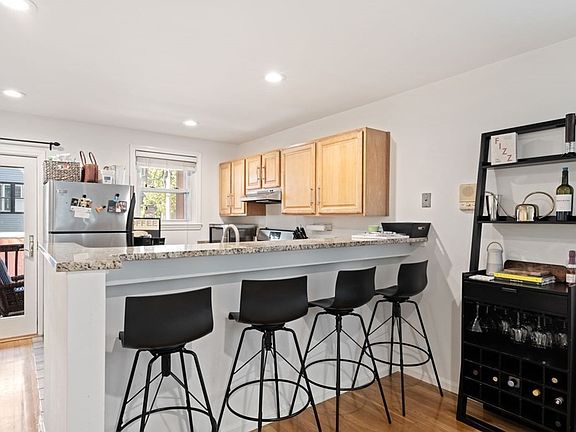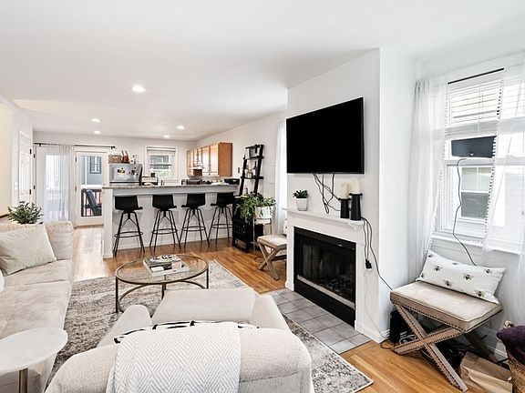 Located on a quaint, tree-lined street on the West side of South Boston but with the convenience of location and proximity to the city! This duplex condo offers two queen size bedrooms with a walk-out from the primary bedroom. Main living level has a designated dining space in a beautiful bay window nook. Living room is spacious with a rare, wood burning fireplace (how cozy!). The kitchen has a breakfast bar with seating for four stools, granite countertops and stainless steel appliances. Windows throughout the living space make this first floor condo feel bright and airy! Bedrooms are located on the level below. Washer/dryer in-unit. Hardwood floors with carpeting in the bedrooms. One off-street deeded parking space with easy access to the back door. Private deck off the kitchen is perfect for enjoying warm summer evenings! Two neighborhood parks were just redone and add green space and charm to the neighborhood. Proximity to area restaurants, shops, public transportation and more.