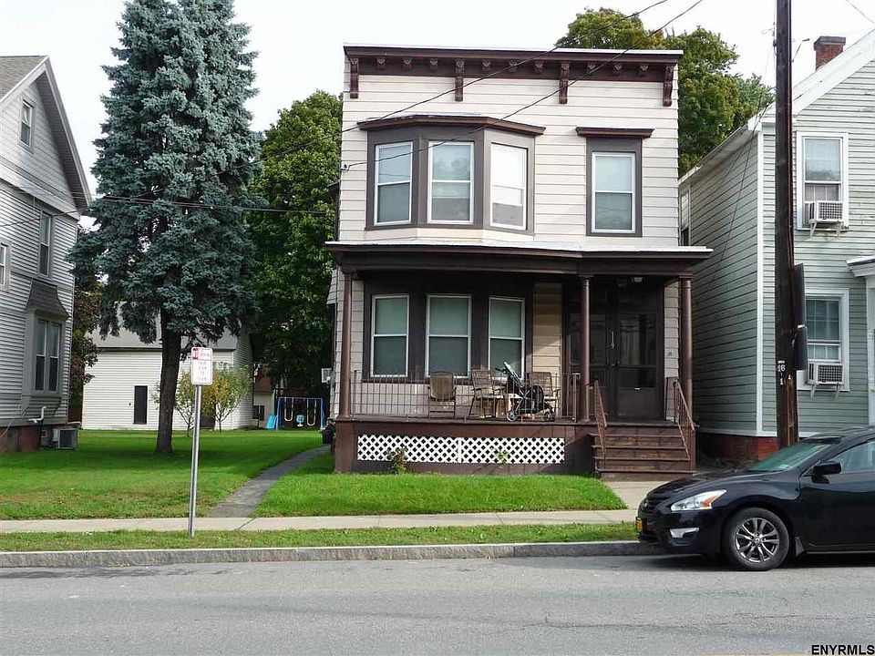 Huge Flats, always rented. Large lot. New front porch 2004, gleaming HW floors, formal dining room each flat. Natural detailed polished woodwork. New Windows 2008/2009, New Rubber Roof 2009, 2nd Floor renovations 2010, New Hot Water Heaters 2016/2018. Oversize double garage with Loft. On bus line. Rents have not been raised in 18 years. Owner to meet agent for showing.