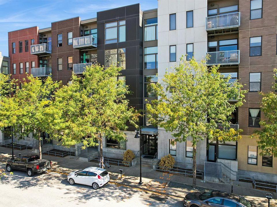 CONDOMINIUM with 2... (TWO!!) CAR Heated PARKING with STORAGE ..... hard to find anywhere downtown at this price point. Parking is side-by-side in a private nook with space all around and between it. A true score! The 2 bedroom/2 bath condo is lovely as well, with updated engineered hardwood flooring, granite counter tops and a 2nd floor balcony that gets a birds-eye-view of the community dog park action below. Pets are welcome here and this particular location is a real score for popping lil puppers out to the secured-fenced greenspace below. Being on the south-end of the building, its just a quick jaunt down the stairs. Spacious primary bedroom with panoramic skyline/sunrise views. The building has cheerful hallways and a well run HOA. If community is important to you, join in on the rooftop gatherings + progressive dinners. A very happy building in the prime-est of prime locations. HOA covers internet, water, garbage, building maintenance/insurance and access to a full GYM. Home offered @ just $282,000 ... COMPARE HOMES ... this sweet price includes both of those deeded parking spots! Gotta check it out.