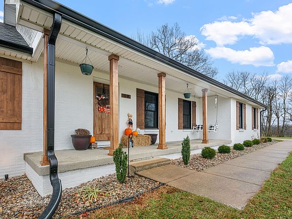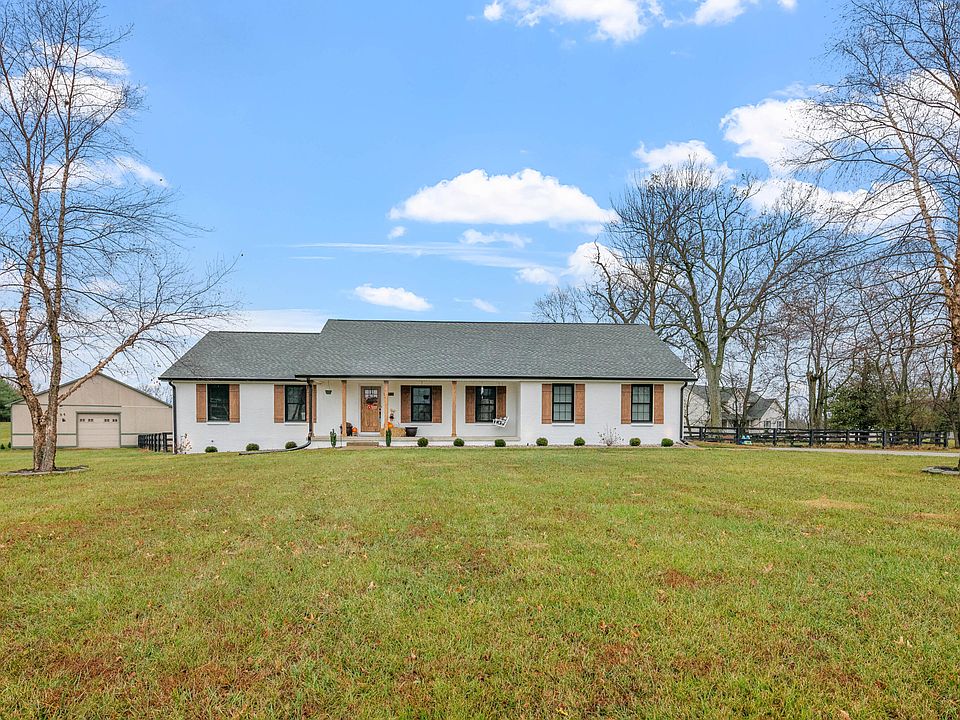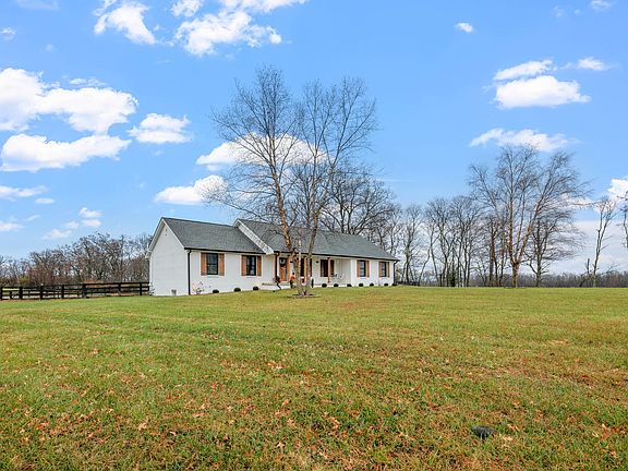 Imagine finding a beautiful brick ranch with a finished basement on 5 gorgeous acres of land minutes from shopping and interstate. The curb appeal when you drive in will remind you of HGTV and instantly brings you home. The large front porch is very inviting. Once inside, you'll enjoy the large family room, but the peace you find looking out the wall of the windows in the main living area overlooking 5 acres with 4 plank fencing is truly unique. The sunroom is being used as a picturesque dining room that creates a very open flow with the large living room and kitchen. The spacious primary suite offers a walk-in closet and newly renovated full bath. The walk-out basement is mostly finished and anchored with a large great room that provides lots of optional uses. There is also a bedroom with a small window, a full bath, and a very large storage room with shelving. On the land is one of the bigger surprises with an amazing 38'x48' barn with Hardie board exterior panels and features overhead doors with openers, concrete floor, a loft, and a finished tack room. Whether you want a place to have chickens, horses, and a garden or you want space for all of your toys, you will have options.