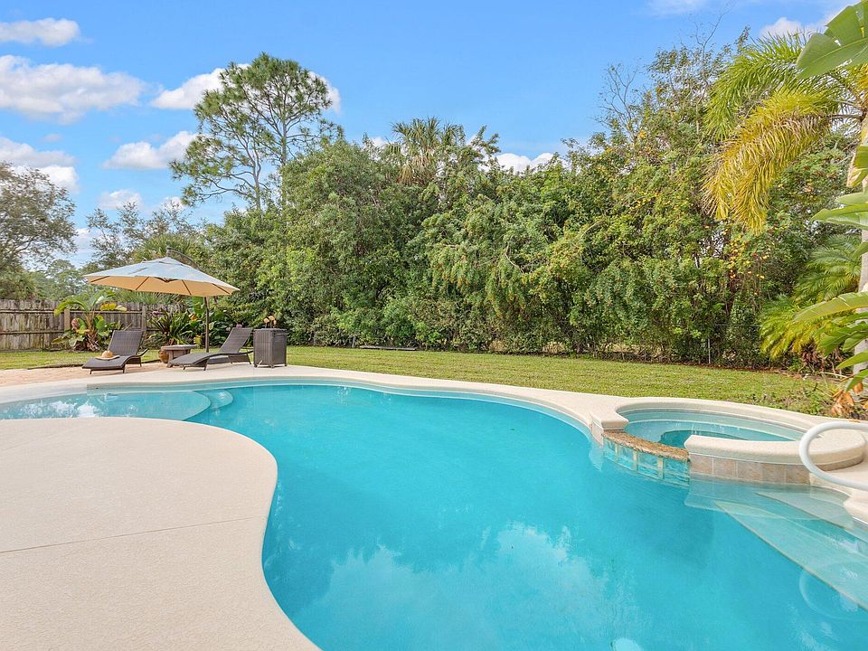 Very private oasis waiting for you to enjoy in the backyard! Heated beach entry style pool with spa make this home great for family gatherings and entertaining. Home has been recently upgraded to include kitchen area and both baths. NEW ROOF is on order!!! (Currently in permitting stage) IMPACT GLASS WINDOWS throughout homes cut down the need for shutters. Tile in main living areas and carpet in bedrooms. Indoor laundry room with appliances included. Just outside of Bayside Lakes, Bayside High School, shopping and restaurants. Turnkey home!