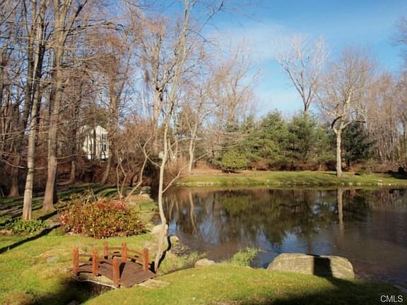 Country colonial on convenient lane in New Canaan is nestled on 2 acres with views of a spring fed pond ideal for fishing and ice hockey. The rooms are very spacious and all offer a water view.There is a sunny solarium overlooking the pond that opens to kitchen with breakfast room. The family room has a fireplace and built-ins. Five large bedrooms and 4.5 baths make this an ideal home. The lower level game and bedroom room walks out to a patio. This home is close to town, train and the parkway. Wired for generator.