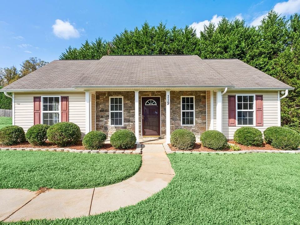 Must see turnkey home in Troutman conveniently located to restaurants and shopping and easy access to Mooresville and Statesville! This home is located on a very quiet street and features new paint throughout, new Whirlpool appliances, new carpet in all bedrooms, new laminate wood flooring in the kitchen and living room and new vinyl plank flooring in the bathrooms. HVAC unit was installed in 2017. The master en suite is privately located on the opposite side of the house, separate from the additional two bedrooms. The living room features vaulted ceilings which leads to the kitchen and dining area and opens up to the backyard and porch where you can entertain and BBQ. Go see this home today!