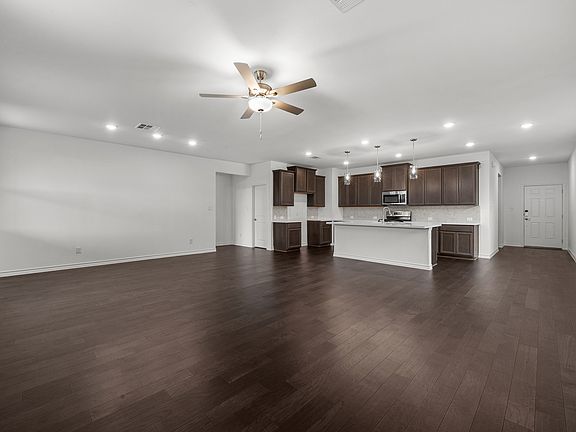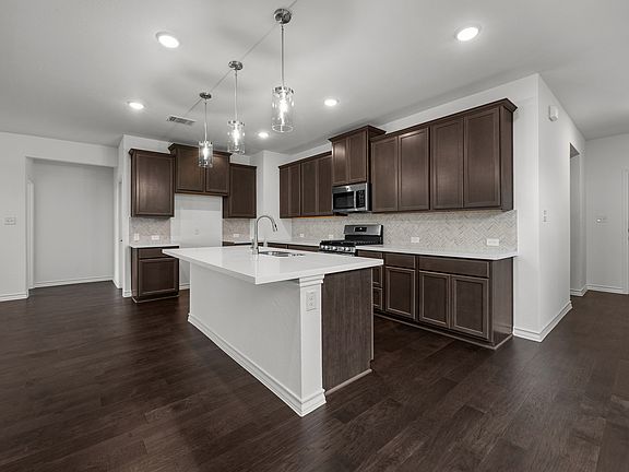 Built by Taylor Morrison, Ready Now. The Bosque! Upon entering this single-story home, you will be greeted by an open floor plan that highlights a spacious great room, dining room, and kitchen. With views to the extended covered patio, the chef never misses the action. A deep walk-in pantry with plentiful shelving offers additional storage opportunities. Secluded at the back of the home, the private owner's suite includes a spacious shower with double vanity, enclosed water closet, and a large walk-in closet. Three spacious bedrooms and a secondary bath including two sinks are in their own private area. Design upgrades feature hardwood flooring and pendant lighting at kitchen island. Structural options added include: extended covered patio and pre-plumb for future water softener.